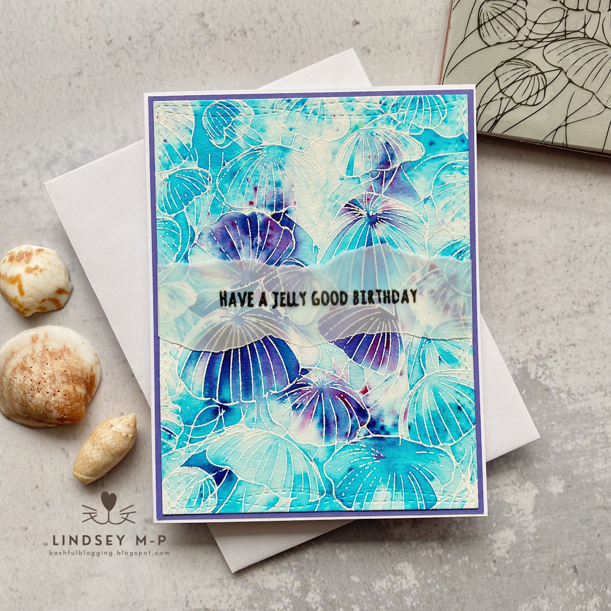 Your jellyfish card is simply sensational! Beautiful use of the powders and I'm sure that blue shimmer is stunning in real life! Vellum for the sentiment is perfect!